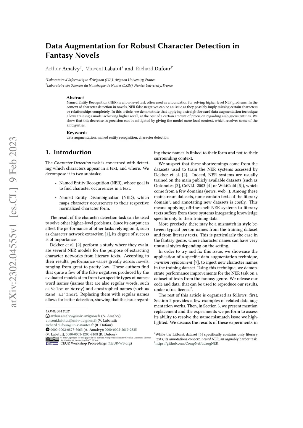 Named Entity Recognition (NER) is a low-level task often used as a foundation for solving higher level NLP problems. In the context of character detection in novels, NER false negatives can be an issue as they possibly imply missing certain characters or relationships completely. In this article, we demonstrate that applying a straightforward data augmentation technique allows training a model achieving higher recall, at the cost of a certain amount of precision regarding ambiguous entities. We show that this decrease in precision can be mitigated by giving the model more local context, which resolves some of the ambiguities.