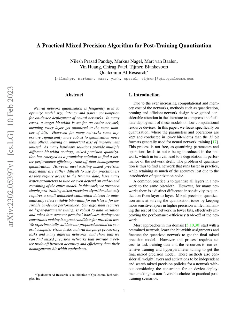 A Practical Mixed Precision Algorithm for Post-Training Quantization