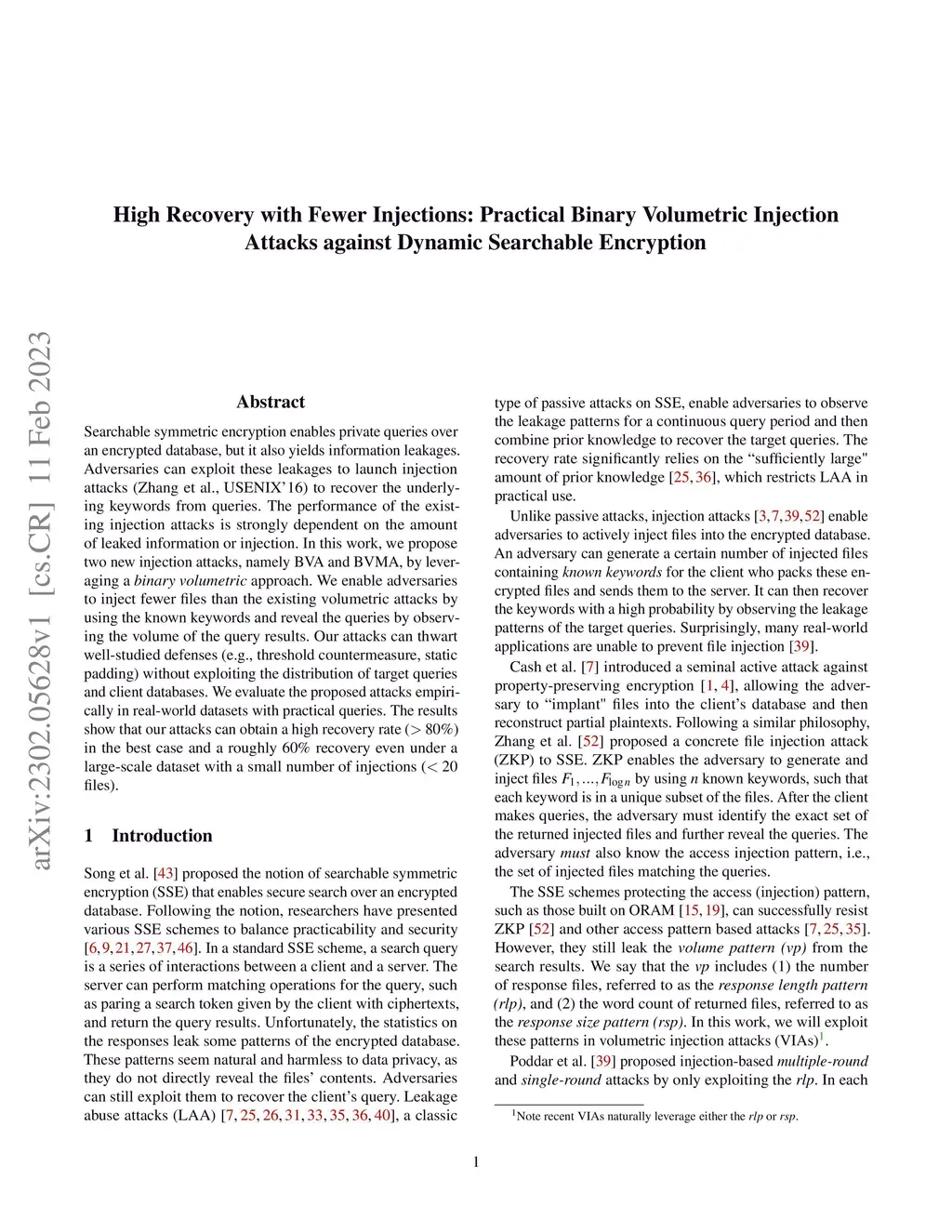 Searchable symmetric encryption enables private queries over an encrypted database, but it also yields information leakages. Adversaries can exploit these leakages to launch injection attacks (Zhang et al., USENIX'16) to recover the underlying keywords from queries. The performance of the existing injection attacks is strongly dependent on the amount of leaked information or injection. In this work, we propose two new injection attacks, namely BVA and BVMA, by leveraging a binary volumetric approach. We enable adversaries to inject fewer files than the existing volumetric attacks by using the known keywords and reveal the queries by observing the volume of the query results. Our attacks can thwart well-studied defenses (e.g., threshold countermeasure, static padding) without exploiting the distribution of target queries and client databases. We evaluate the proposed attacks empirically in real-world datasets with practical queries. The results show that our attacks can obtain a high recovery rate (>80%) in the best case and a roughly 60% recovery even under a large-scale dataset with a small number of injections (<20 files).