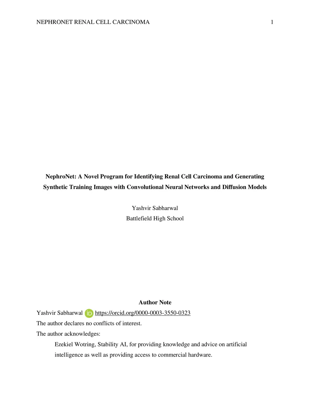 NephroNet: A Novel Program for Identifying Renal Cell Carcinoma and