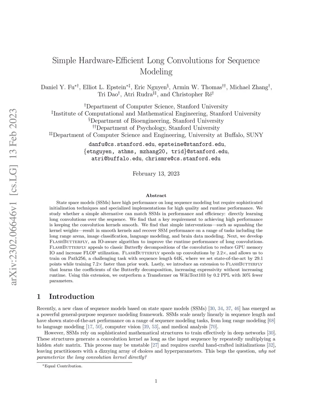 State space models (SSMs) have high performance on long sequence modeling but require sophisticated initialization techniques and specialized implementations for high quality and runtime performance. We study whether a simple alternative can match SSMs in performance and efficiency: directly learning long convolutions over the sequence. We find that a key requirement to achieving high performance is keeping the convolution kernels smooth. We find that simple interventions--such as squashing the kernel weights--result in smooth kernels and recover SSM performance on a range of tasks including the long range arena, image classification, language modeling, and brain data modeling. Next, we develop FlashButterfly, an IO-aware algorithm to improve the runtime performance of long convolutions. FlashButterfly appeals to classic Butterfly decompositions of the convolution to reduce GPU memory IO and increase FLOP utilization. FlashButterfly speeds up convolutions by 2.2, and allows us to train on Path256, a challenging task with sequence length 64K, where we set state-of-the-art by 29.1 points while training 7.2 faster than prior work. Lastly, we introduce an extension to FlashButterfly that learns the coefficients of the Butterfly decomposition, increasing expressivity without increasing runtime. Using this extension, we outperform a Transformer on WikiText103 by 0.2 PPL with 30% fewer parameters.