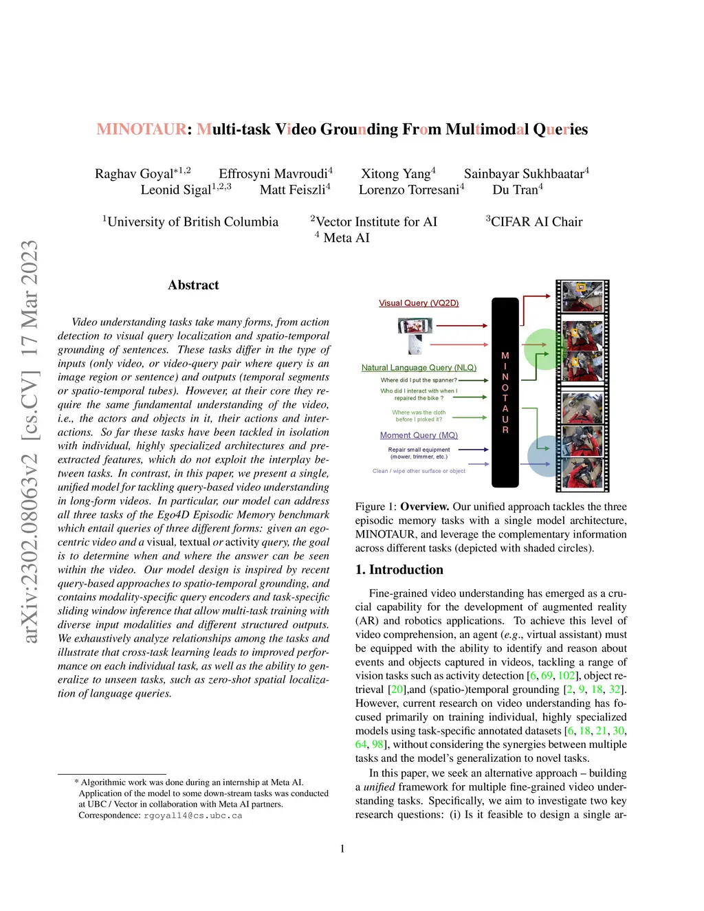 MINOTAUR: Multi-task Video Grounding From Multimodal Queries