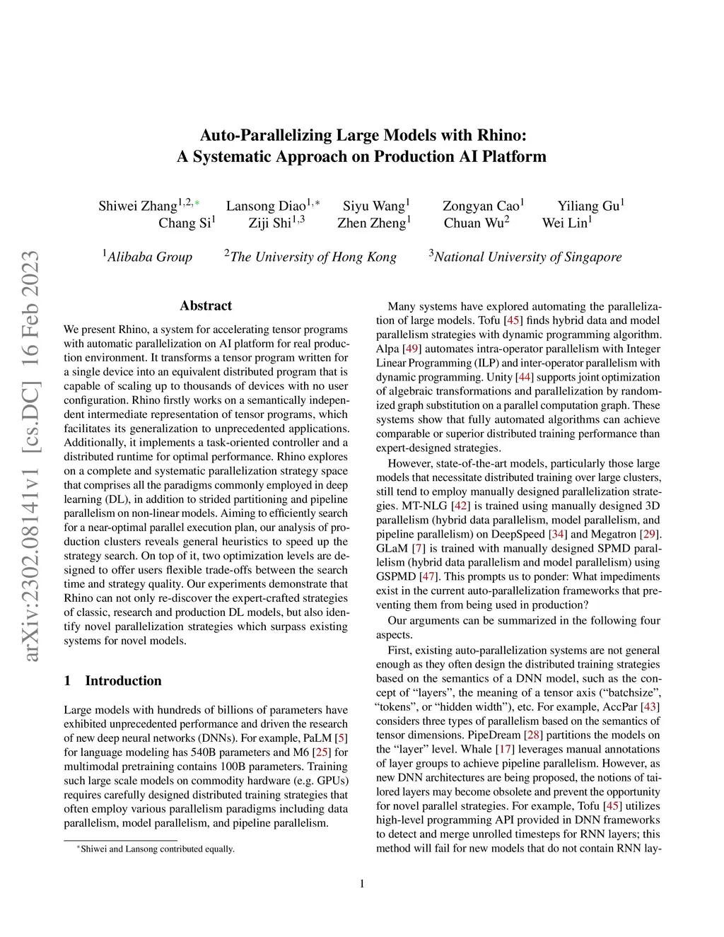 Auto-Parallelizing Large Models with Rhino: A Systematic Approach on