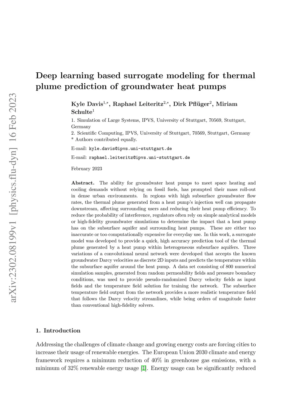 The ability for groundwater heat pumps to meet space heating and cooling demands without relying on fossil fuels, has prompted their mass roll out in dense urban environments. In regions with high subsurface groundwater flow rates, the thermal plume generated from a heat pump's injection well can propagate downstream, affecting surrounding users and reducing their heat pump efficiency. To reduce the probability of interference, regulators often rely on simple analytical models or high fidelity groundwater simulations to determine the impact that a heat pump has on the subsurface aquifer and surrounding heat pumps. These are either too inaccurate or too computationally expensive for everyday use. In this work, a surrogate model was developed to provide a quick, high accuracy prediction tool of the thermal plume generated by a heat pump within heterogeneous subsurface aquifers. Three variations of a convolutional neural network were developed that accepts the known groundwater Darcy velocities as discrete two-dimensional inputs and predicts the temperature within the subsurface aquifer around the heat pump. A data set consisting of 800 numerical simulation samples, generated from random permeability fields and pressure boundary conditions, was used to provide pseudo-randomized Darcy velocity fields as input fields and the temperature field solution for training the network. The subsurface temperature field output from the network provides a more realistic temperature field that follows the Darcy velocity streamlines, while being orders of magnitude faster than conventional high fidelity solvers