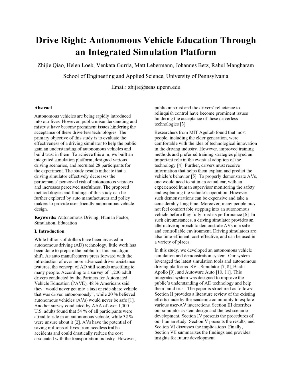 Drive Right: Promoting Autonomous Vehicle Education Through an