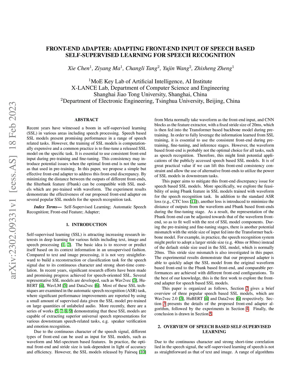 Front-End Adapter: Adapting Front-End Input of Speech based