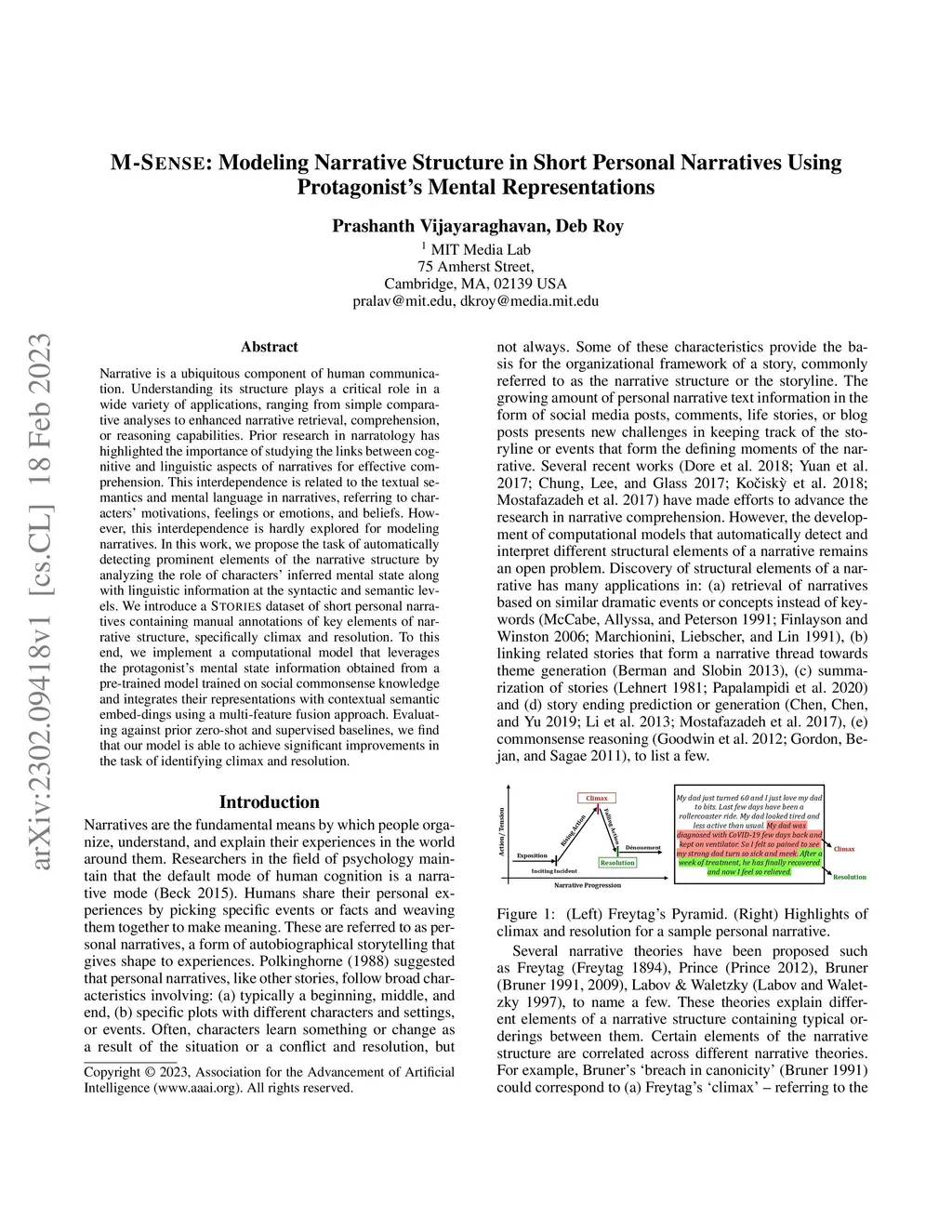 M-SENSE: Modeling Narrative Structure in Short Personal Narratives Using