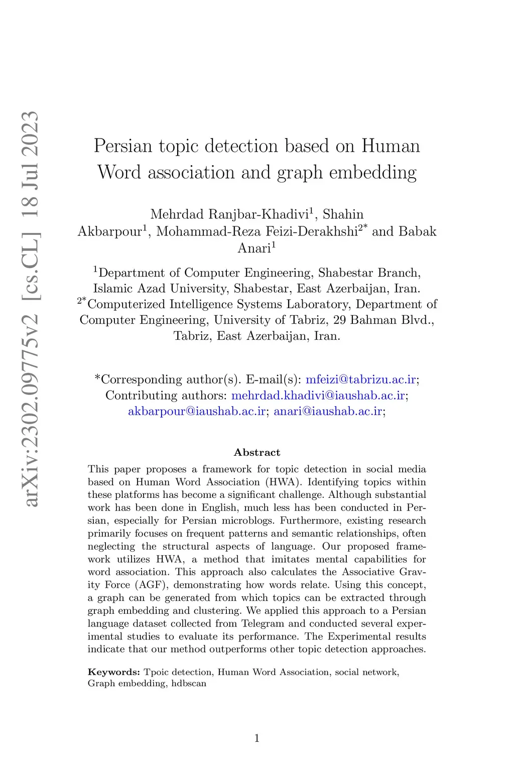In this paper, we propose a framework to detect topics in social media based on Human Word Association. Identifying topics discussed in these media has become a critical and significant challenge. Most of the work done in this area is in English, but much has been done in the Persian language, especially microblogs written in Persian. Also, the existing works focused more on exploring frequent patterns or semantic relationships and ignored the structural methods of language. In this paper, a topic detection framework using HWA, a method for Human Word Association, is proposed. This method uses the concept of imitation of mental ability for word association. This method also calculates the Associative Gravity Force that shows how words are related. Using this parameter, a graph can be generated. The topics can be extracted by embedding this graph and using clustering methods. This approach has been applied to a Persian language dataset collected from Telegram. Several experimental studies have been performed to evaluate the proposed framework's performance. Experimental results show that this approach works better than other topic detection methods.