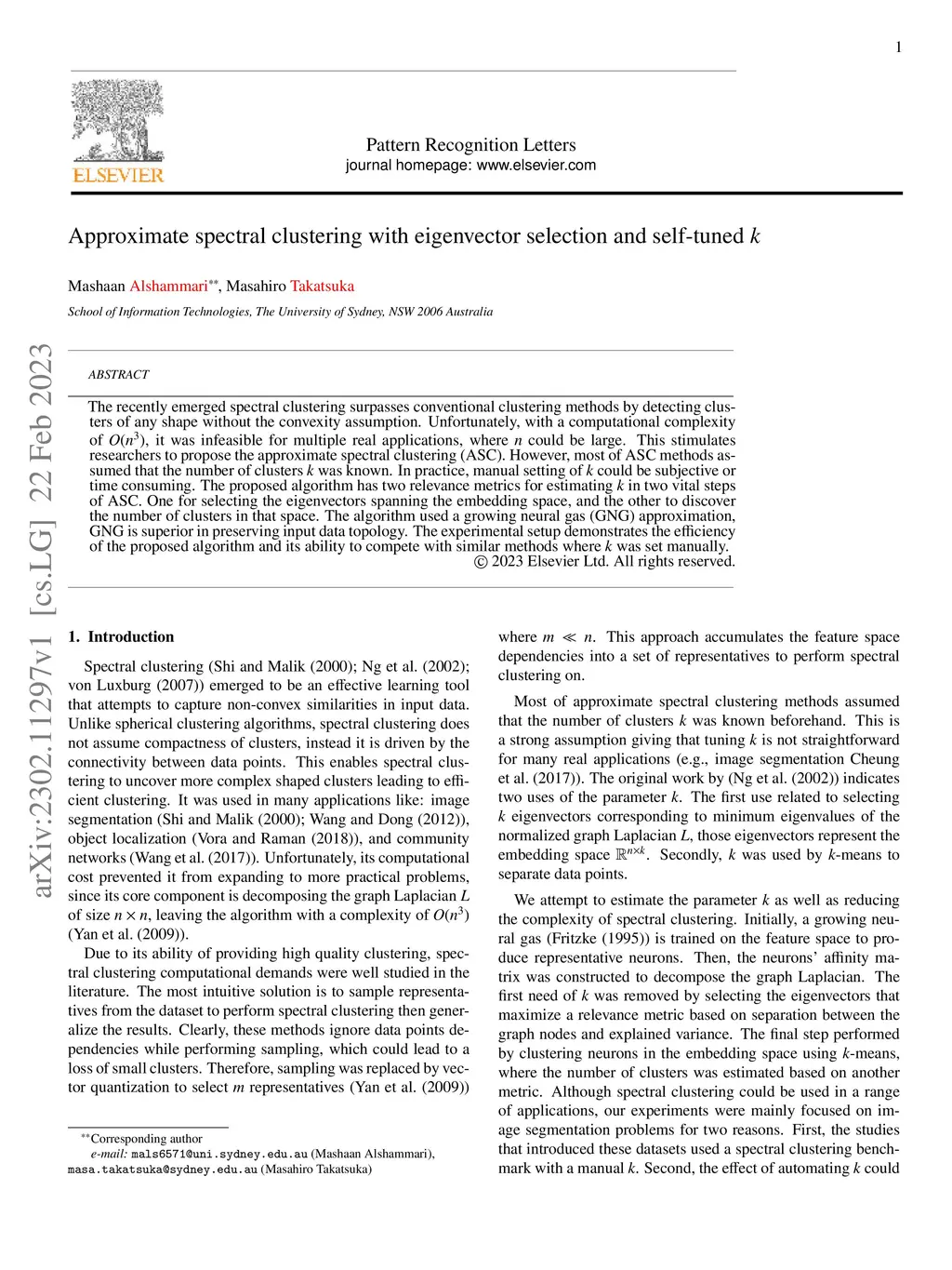 The recently emerged spectral clustering surpasses conventional clustering methods by detecting clusters of any shape without the convexity assumption. Unfortunately, with a computational complexity of , it was infeasible for multiple real applications, where could be large. This stimulates researchers to propose the approximate spectral clustering (ASC). However, most of ASC methods assumed that the number of clusters was known. In practice, manual setting of could be subjective or time consuming. The proposed algorithm has two relevance metrics for estimating in two vital steps of ASC. One for selecting the eigenvectors spanning the embedding space, and the other to discover the number of clusters in that space. The algorithm used a growing neural gas (GNG) approximation, GNG is superior in preserving input data topology. The experimental setup demonstrates the efficiency of the proposed algorithm and its ability to compete with similar methods where was set manually.