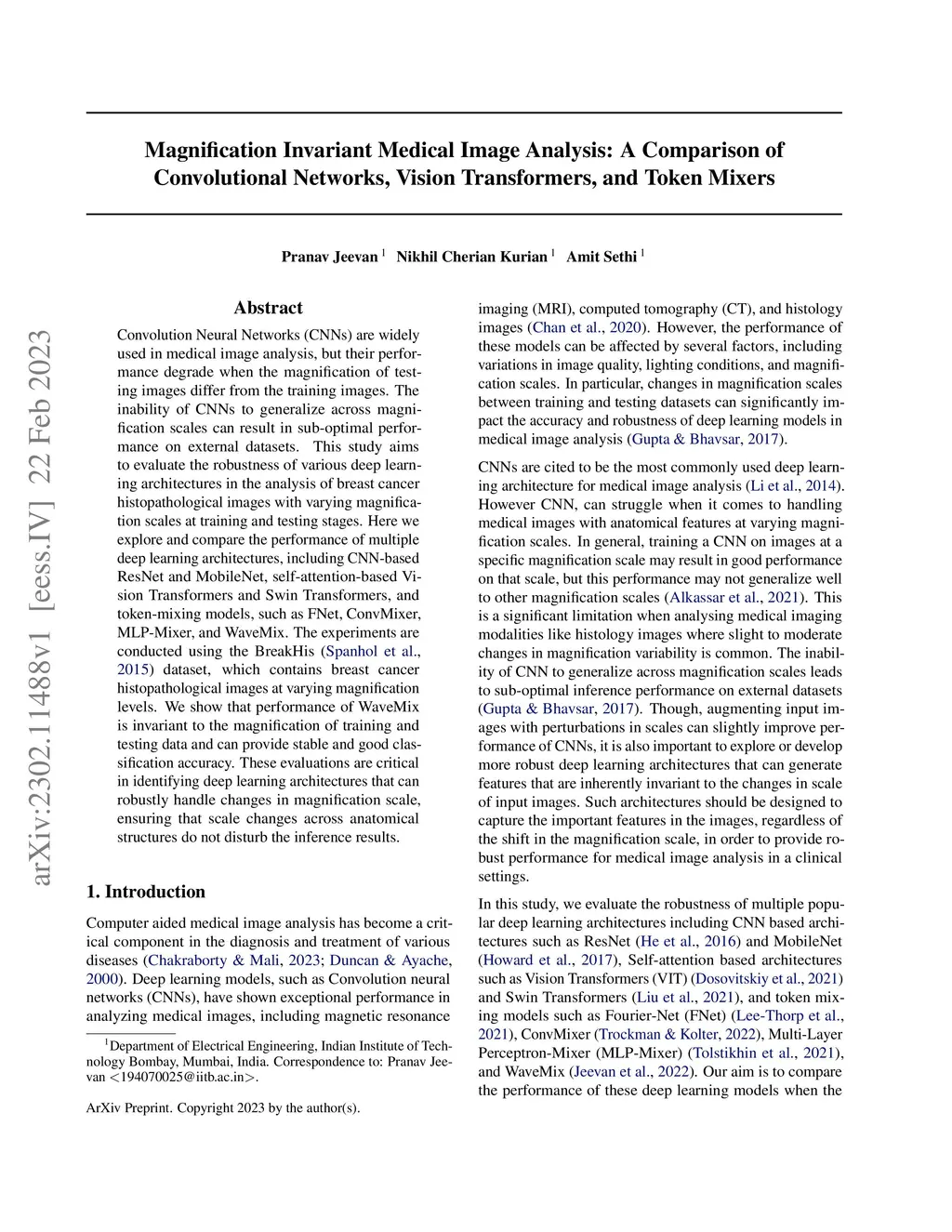 Convolution Neural Networks (CNNs) are widely used in medical image analysis, but their performance degrade when the magnification of testing images differ from the training images. The inability of CNNs to generalize across magnification scales can result in sub-optimal performance on external datasets. This study aims to evaluate the robustness of various deep learning architectures in the analysis of breast cancer histopathological images with varying magnification scales at training and testing stages. Here we explore and compare the performance of multiple deep learning architectures, including CNN-based ResNet and MobileNet, self-attention-based Vision Transformers and Swin Transformers, and token-mixing models, such as FNet, ConvMixer, MLP-Mixer, and WaveMix. The experiments are conducted using the BreakHis dataset, which contains breast cancer histopathological images at varying magnification levels. We show that performance of WaveMix is invariant to the magnification of training and testing data and can provide stable and good classification accuracy. These evaluations are critical in identifying deep learning architectures that can robustly handle changes in magnification scale, ensuring that scale changes across anatomical structures do not disturb the inference results.