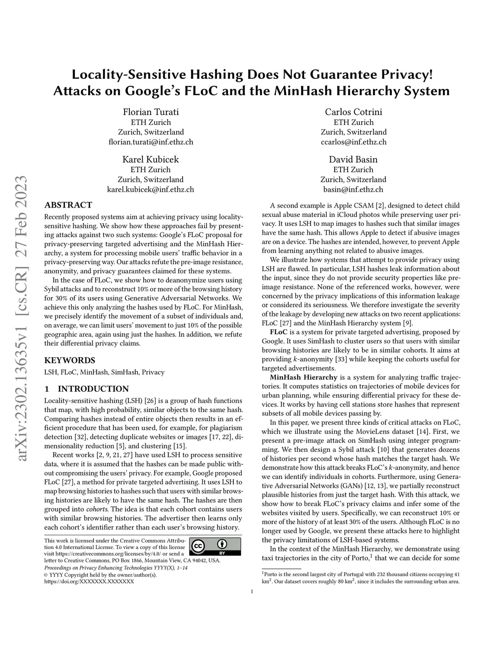 Recently proposed systems aim at achieving privacy using locality-sensitive hashing. We show how these approaches fail by presenting attacks against two such systems: Google's FLoC proposal for privacy-preserving targeted advertising and the MinHash Hierarchy, a system for processing mobile users' traffic behavior in a privacy-preserving way. Our attacks refute the pre-image resistance, anonymity, and privacy guarantees claimed for these systems. In the case of FLoC, we show how to deanonymize users using Sybil attacks and to reconstruct 10% or more of the browsing history for 30% of its users using Generative Adversarial Networks. We achieve this only analyzing the hashes used by FLoC. For MinHash, we precisely identify the movement of a subset of individuals and, on average, we can limit users' movement to just 10% of the possible geographic area, again using just the hashes. In addition, we refute their differential privacy claims.
