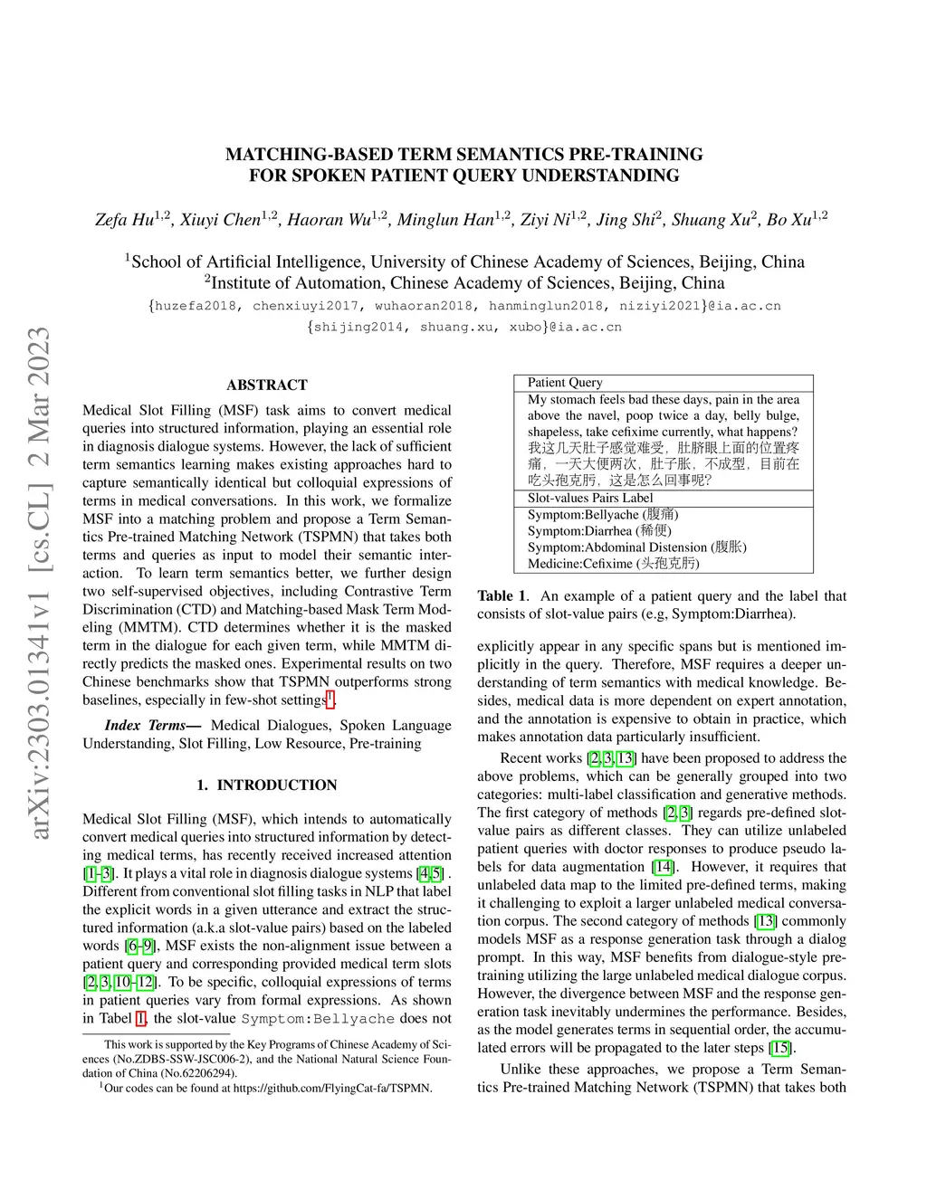Matching-based Term Semantics Pre-training for Spoken Patient Query