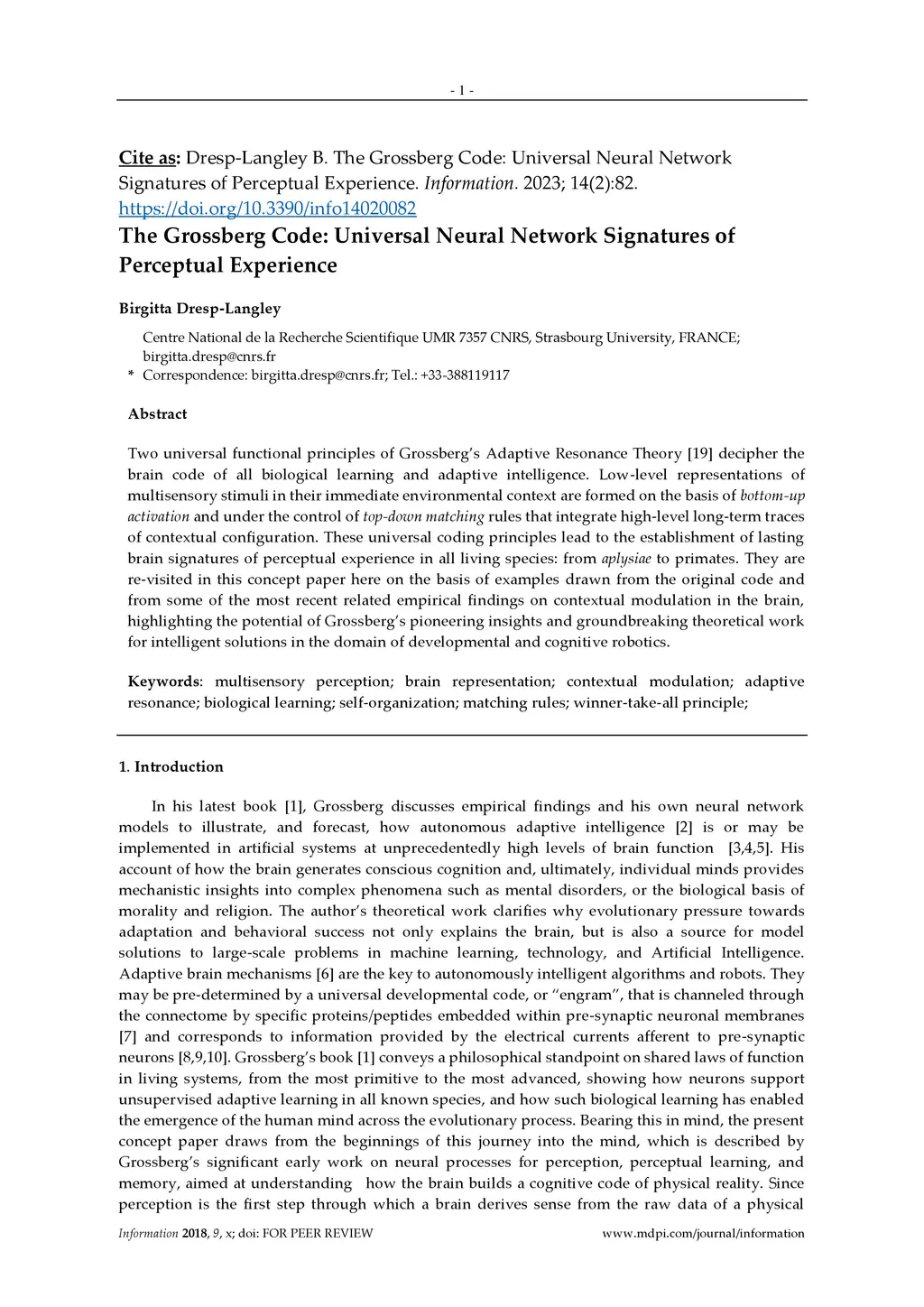 Two universal functional principles of Adaptive Resonance Theory simulate the brain code of all biological learning and adaptive intelligence. Low level representations of multisensory stimuli in their immediate environmental context are formed on the basis of bottom up activation and under the control of top down matching rules that integrate high level long term traces of contextual configuration. These universal coding principles lead to the establishment of lasting brain signatures of perceptual experience in all living species, from aplysiae to primates. They are revisited in this paper here on the basis of examples drawn from the original code and from some of the most recent related empirical findings on contextual modulation in the brain, highlighting the potential of Grossberg's pioneering insights and groundbreaking theoretical work for intelligent solutions in the domain of developmental and cognitive robotics.