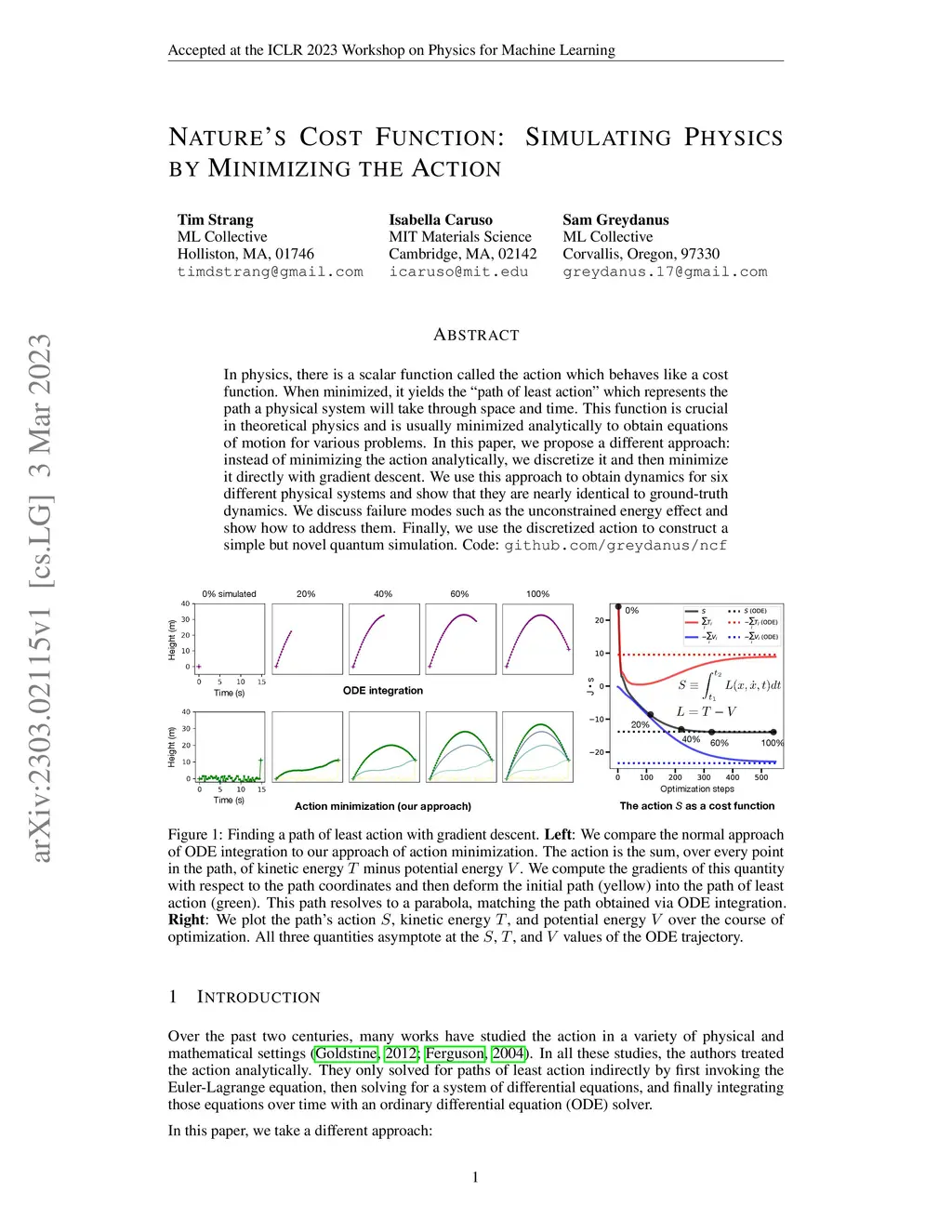 In physics, there is a scalar function called the action which behaves like a cost function. When minimized, it yields the "path of least action" which represents the path a physical system will take through space and time. This function is crucial in theoretical physics and is usually minimized analytically to obtain equations of motion for various problems. In this paper, we propose a different approach: instead of minimizing the action analytically, we discretize it and then minimize it directly with gradient descent. We use this approach to obtain dynamics for six different physical systems and show that they are nearly identical to ground-truth dynamics. We discuss failure modes such as the unconstrained energy effect and show how to address them. Finally, we use the discretized action to construct a simple but novel quantum simulation.