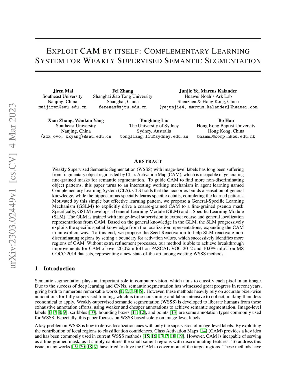Exploit CAM by itself: Complementary Learning System for Weakly