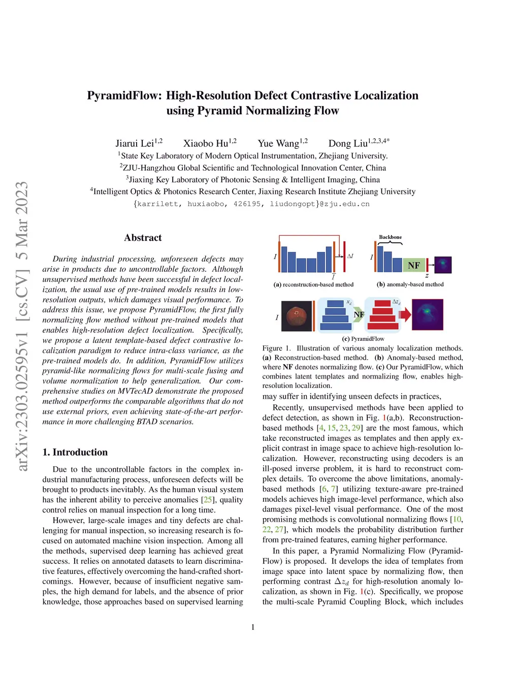 PyramidFlow: High-Resolution Defect Contrastive Localization using