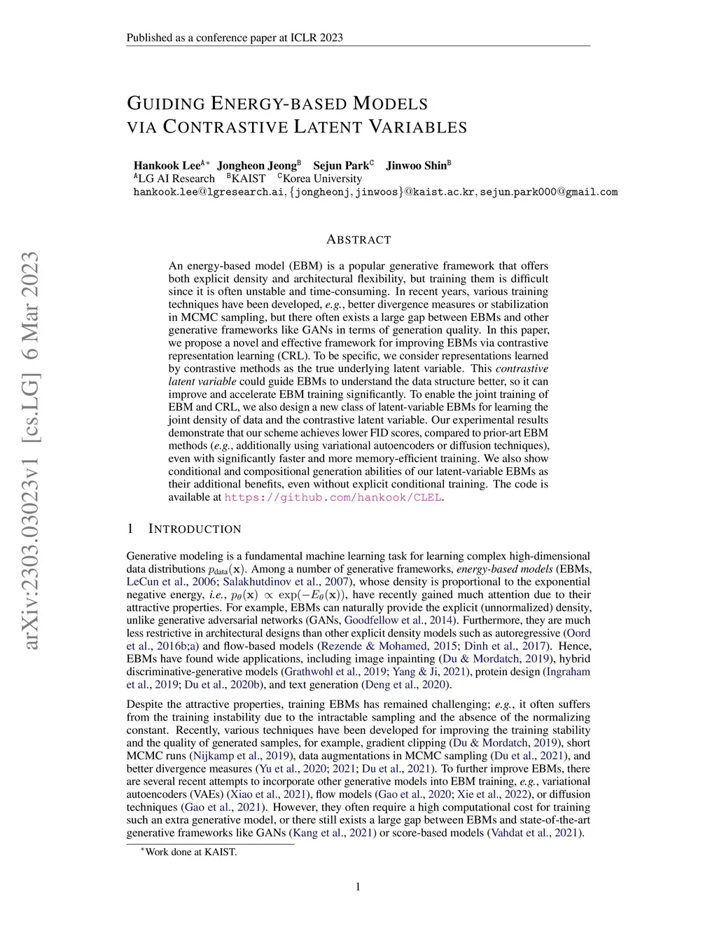 Guiding Energy-based Models via Contrastive Latent Variables