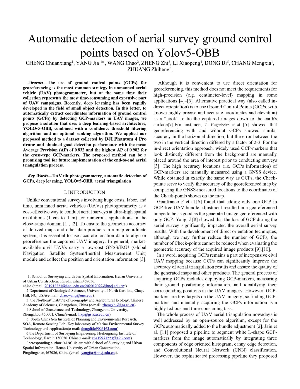 The use of ground control points (GCPs) for georeferencing is the most common strategy in unmanned aerial vehicle (UAV) photogrammetry, but at the same time their collection represents the most time-consuming and expensive part of UAV campaigns. Recently, deep learning has been rapidly developed in the field of small object detection. In this letter, to automatically extract coordinates information of ground control points (GCPs) by detecting GCP-markers in UAV images, we propose a solution that uses a deep learning-based architecture, YOLOv5-OBB, combined with a confidence threshold filtering algorithm and an optimal ranking algorithm. We applied our proposed method to a dataset collected by DJI Phantom 4 Pro drone and obtained good detection performance with the mean Average Precision (AP) of 0.832 and the highest AP of 0.982 for the cross-type GCP-markers. The proposed method can be a promising tool for future implementation of the end-to-end aerial triangulation process.