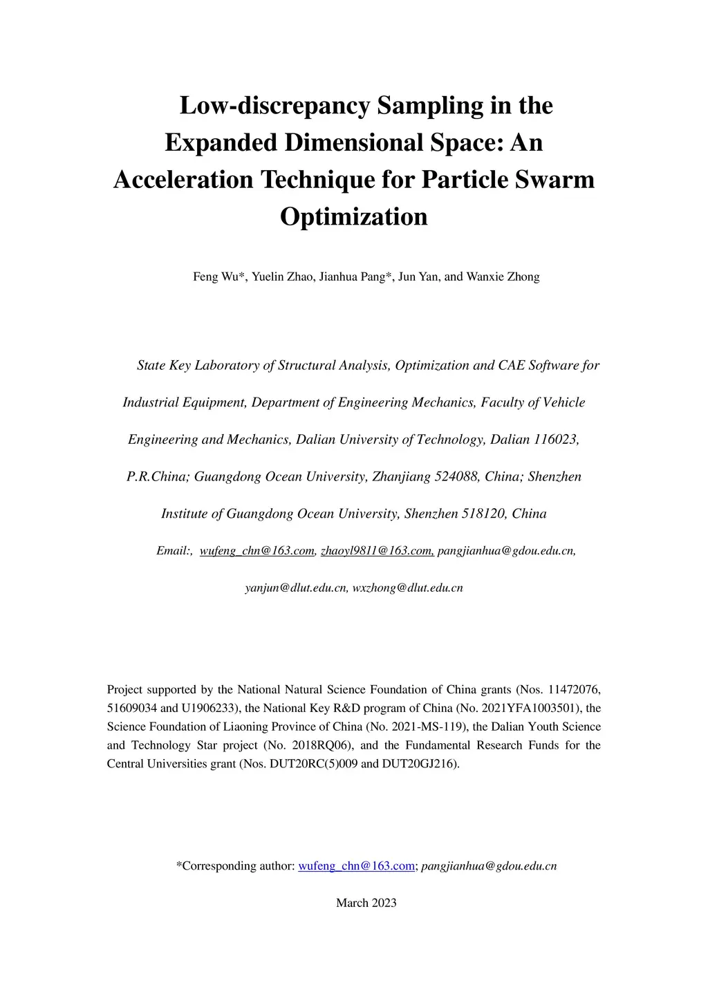Compared with random sampling, low-discrepancy sampling is more effective in covering the search space. However, the existing research cannot definitely state whether the impact of a low-discrepancy sample on particle swarm optimization (PSO) is positive or negative. Using Niderreiter's theorem, this study completes an error analysis of PSO, which reveals that the error bound of PSO at each iteration depends on the dispersion of the sample set in an expanded dimensional space. Based on this error analysis, an acceleration technique for PSO-type algorithms is proposed with low-discrepancy sampling in the expanded dimensional space. The acceleration technique can generate a low-discrepancy sample set with a smaller dispersion, compared with a random sampling, in the expanded dimensional space; it also reduces the error at each iteration, and hence improves the convergence speed. The acceleration technique is combined with the standard PSO and the comprehensive learning particle swarm optimization, and the performance of the improved algorithm is compared with the original algorithm. The experimental results show that the two improved algorithms have significantly faster convergence speed under the same accuracy requirement.