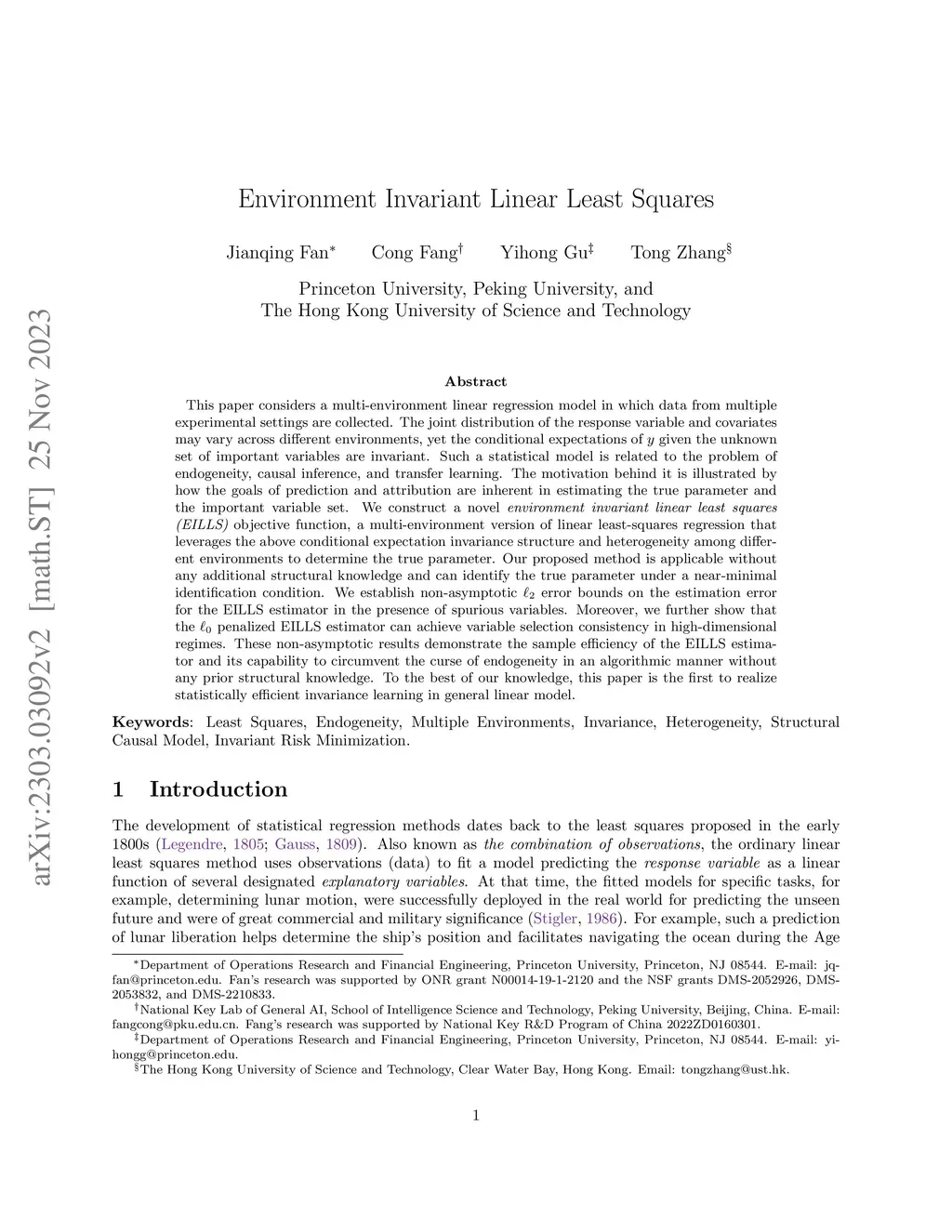 Environment Invariant Linear Least Squares