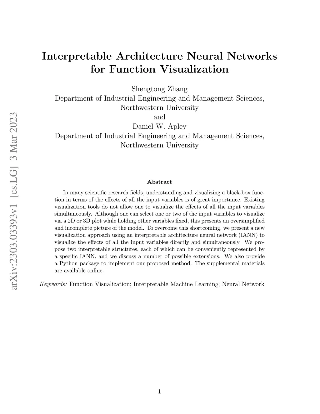 In many scientific research fields, understanding and visualizing a black-box function in terms of the effects of all the input variables is of great importance. Existing visualization tools do not allow one to visualize the effects of all the input variables simultaneously. Although one can select one or two of the input variables to visualize via a 2D or 3D plot while holding other variables fixed, this presents an oversimplified and incomplete picture of the model. To overcome this shortcoming, we present a new visualization approach using an interpretable architecture neural network (IANN) to visualize the effects of all the input variables directly and simultaneously. We propose two interpretable structures, each of which can be conveniently represented by a specific IANN, and we discuss a number of possible extensions. We also provide a Python package to implement our proposed method. The supplemental materials are available online.