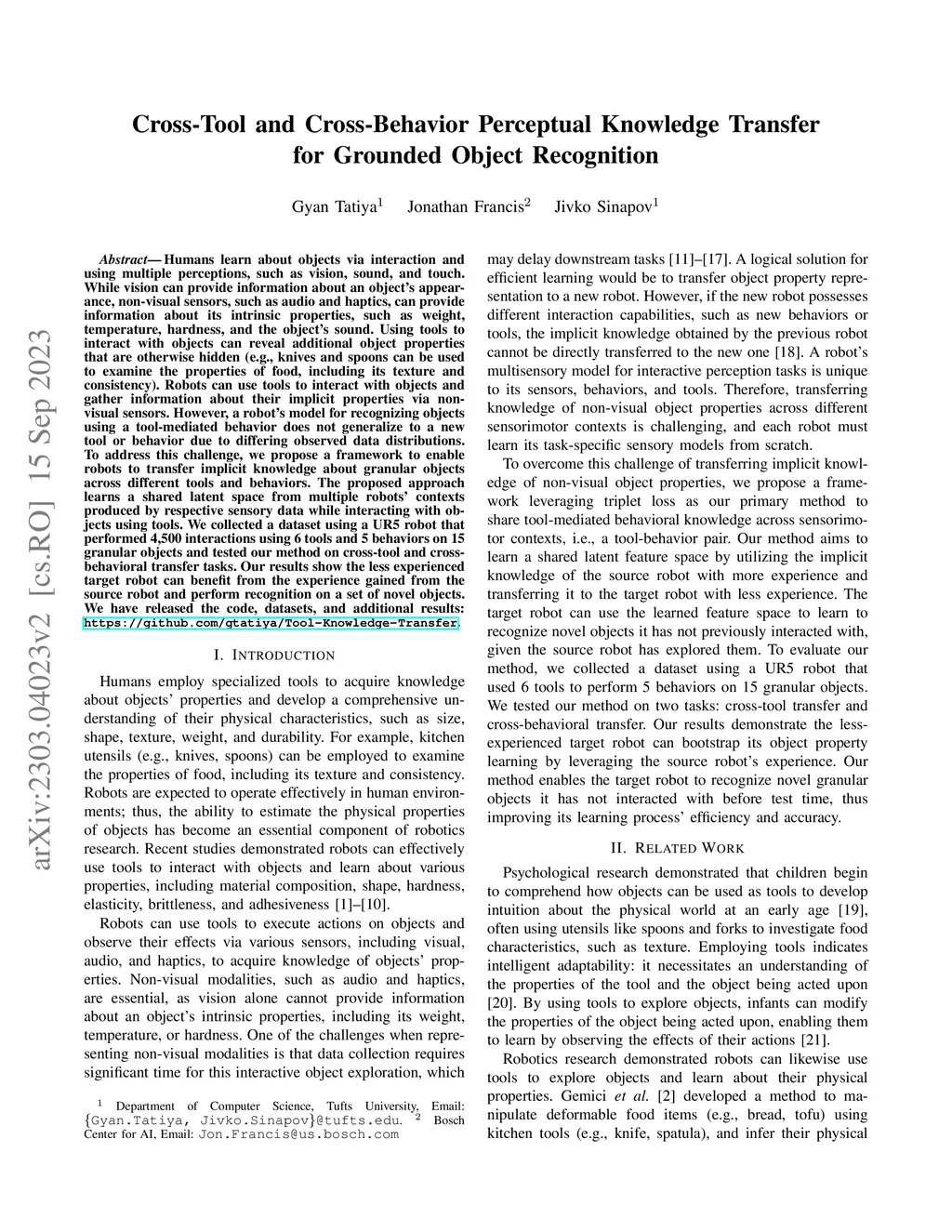 Cross-Tool and Cross-Behavior Perceptual Knowledge Transfer for Grounded