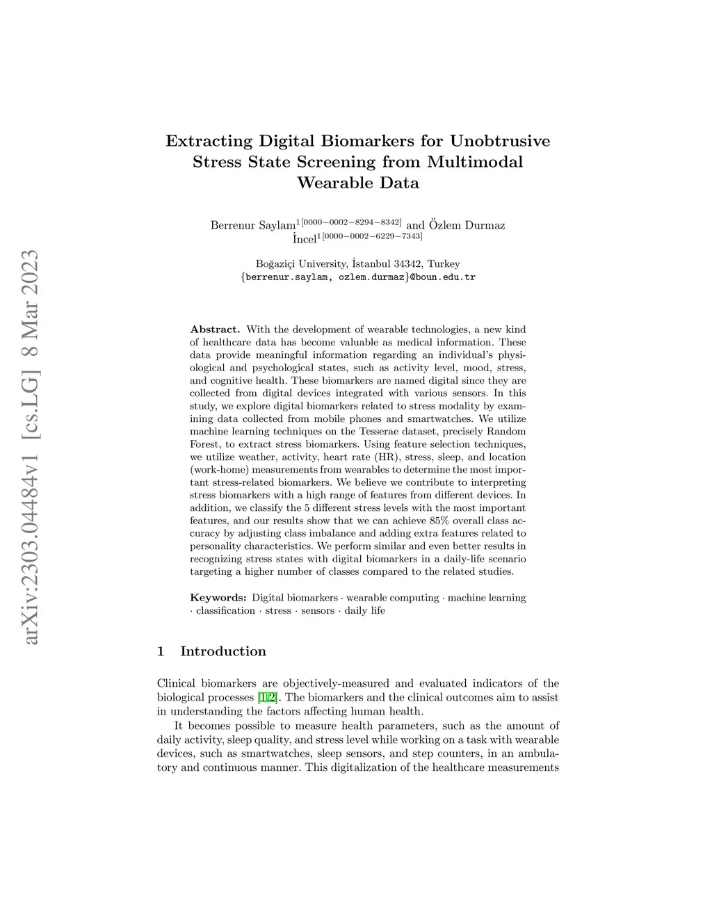 Extracting Digital Biomarkers for Unobtrusive Stress State Screening
