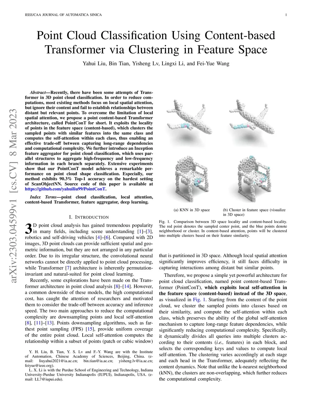 Recently, there have been some attempts of Transformer in 3D point cloud classification. In order to reduce computations, most existing methods focus on local spatial attention, but ignore their content and fail to establish relationships between distant but relevant points. To overcome the limitation of local spatial attention, we propose a point content-based Transformer architecture, called PointConT for short. It exploits the locality of points in the feature space (content-based), which clusters the sampled points with similar features into the same class and computes the self-attention within each class, thus enabling an effective trade-off between capturing long-range dependencies and computational complexity. We further introduce an Inception feature aggregator for point cloud classification, which uses parallel structures to aggregate high-frequency and low-frequency information in each branch separately. Extensive experiments show that our PointConT model achieves a remarkable performance on point cloud shape classification. Especially, our method exhibits 90.3% Top-1 accuracy on the hardest setting of ScanObjectNN. Source code of this paper is available at https://github.com/yahuiliu99/PointConT.