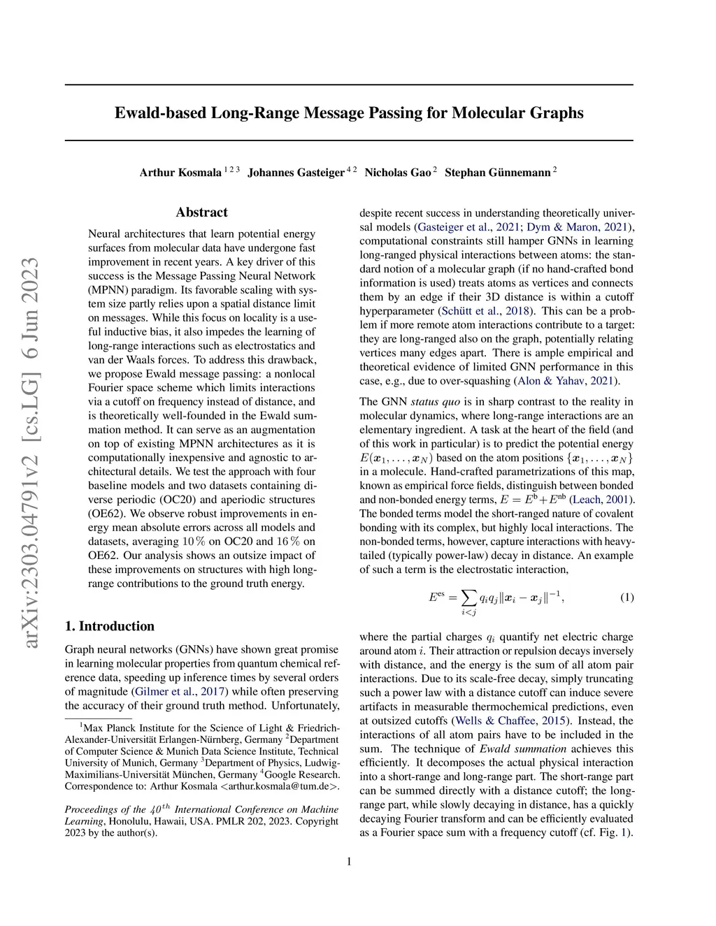 Ewald-based Long-Range Message Passing for Molecular Graphs