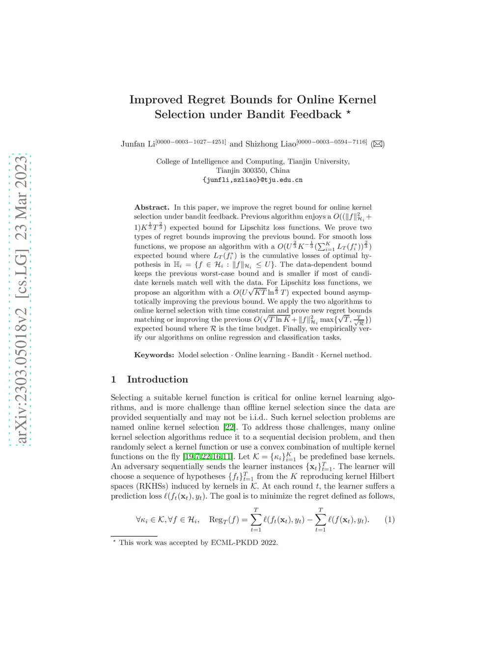 Improved Regret Bounds for Online Kernel Selection under Bandit Feedback