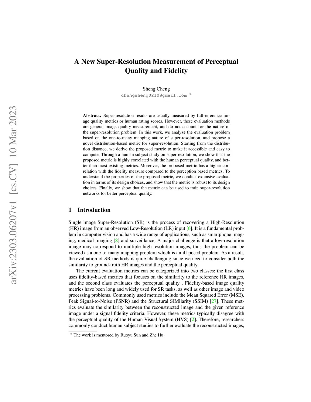 A New Super-Resolution Measurement of Perceptual Quality and Fidelity