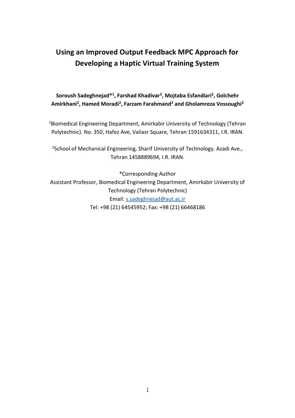 Using an Improved Output Feedback MPC Approach for Developing a Haptic