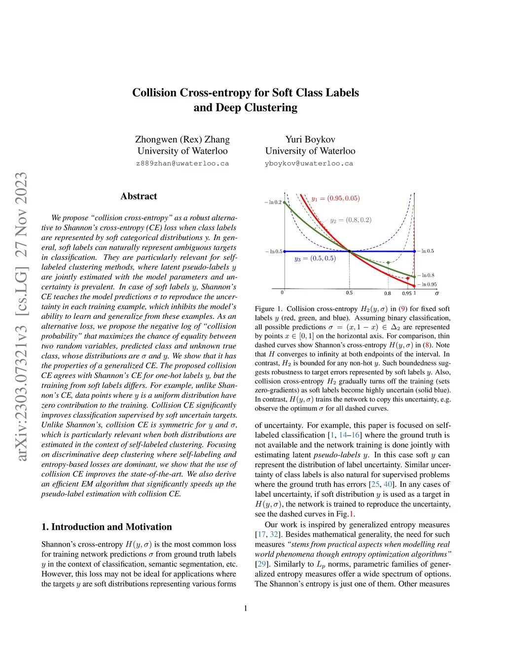 Collision Cross-entropy for Soft Class Labels and Deep Clustering
