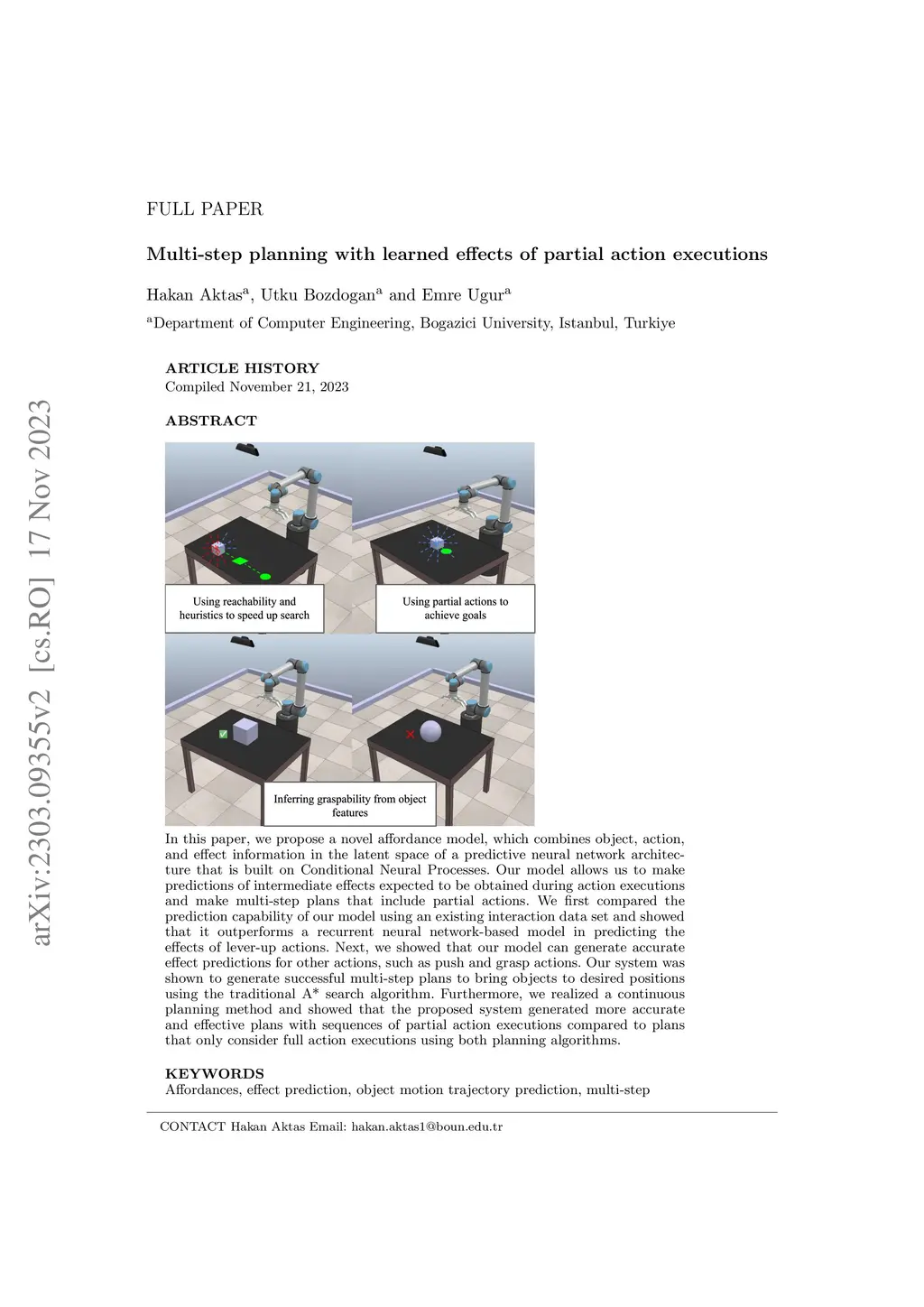 Multi-step planning with learned effects of partial action executions