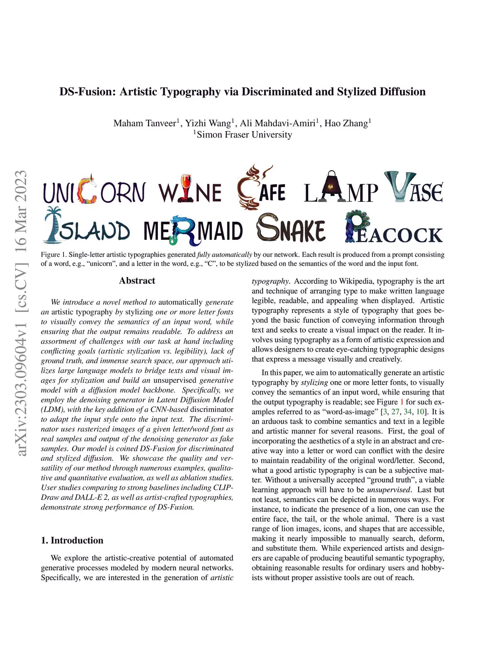 DS-Fusion: Artistic Typography via Discriminated and Stylized Diffusion