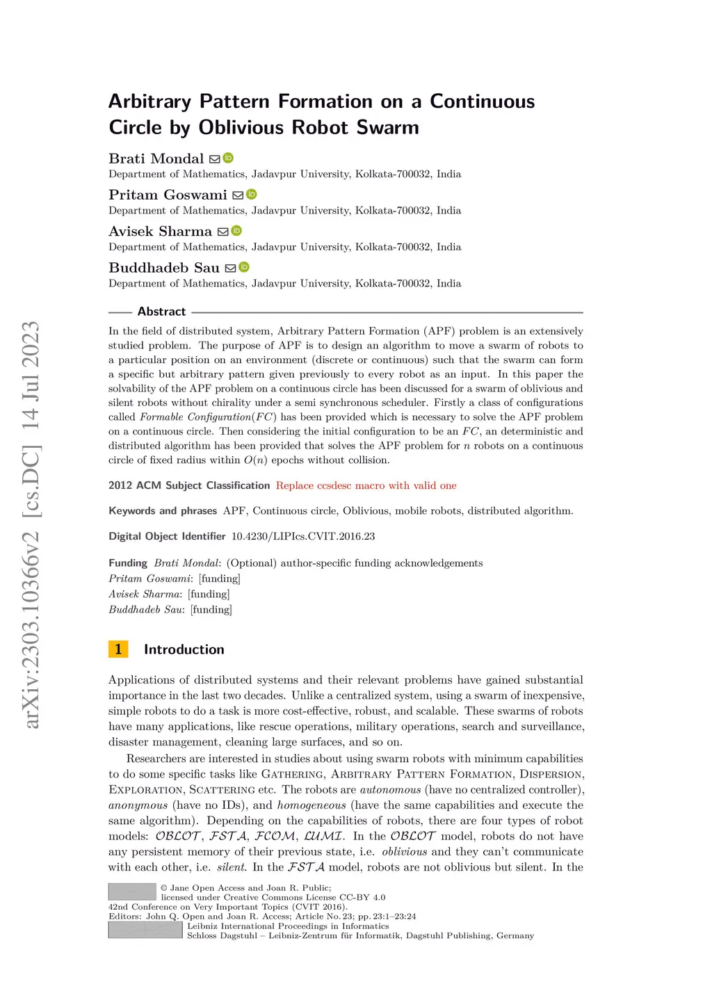 Arbitrary Pattern Formation on a Continuous Circle by Oblivious Robot