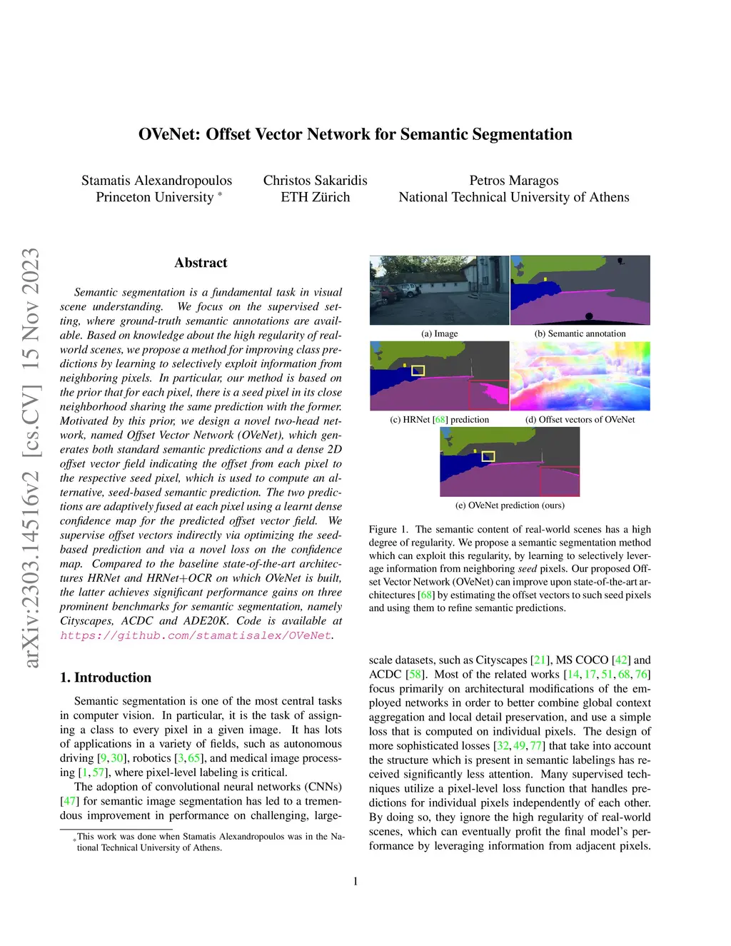 OVeNet: Offset Vector Network for Semantic Segmentation