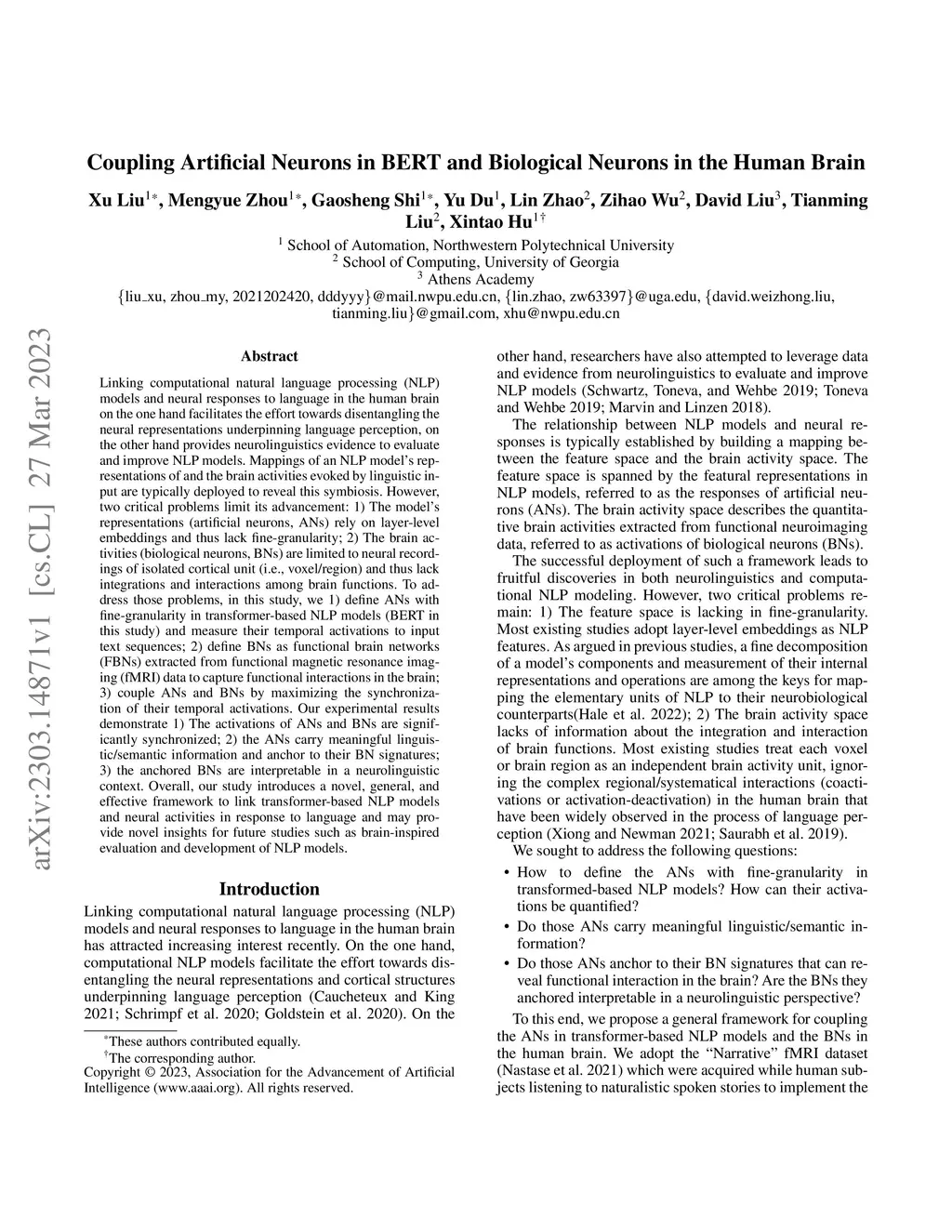 Coupling Artificial Neurons in BERT and Biological Neurons in the Human