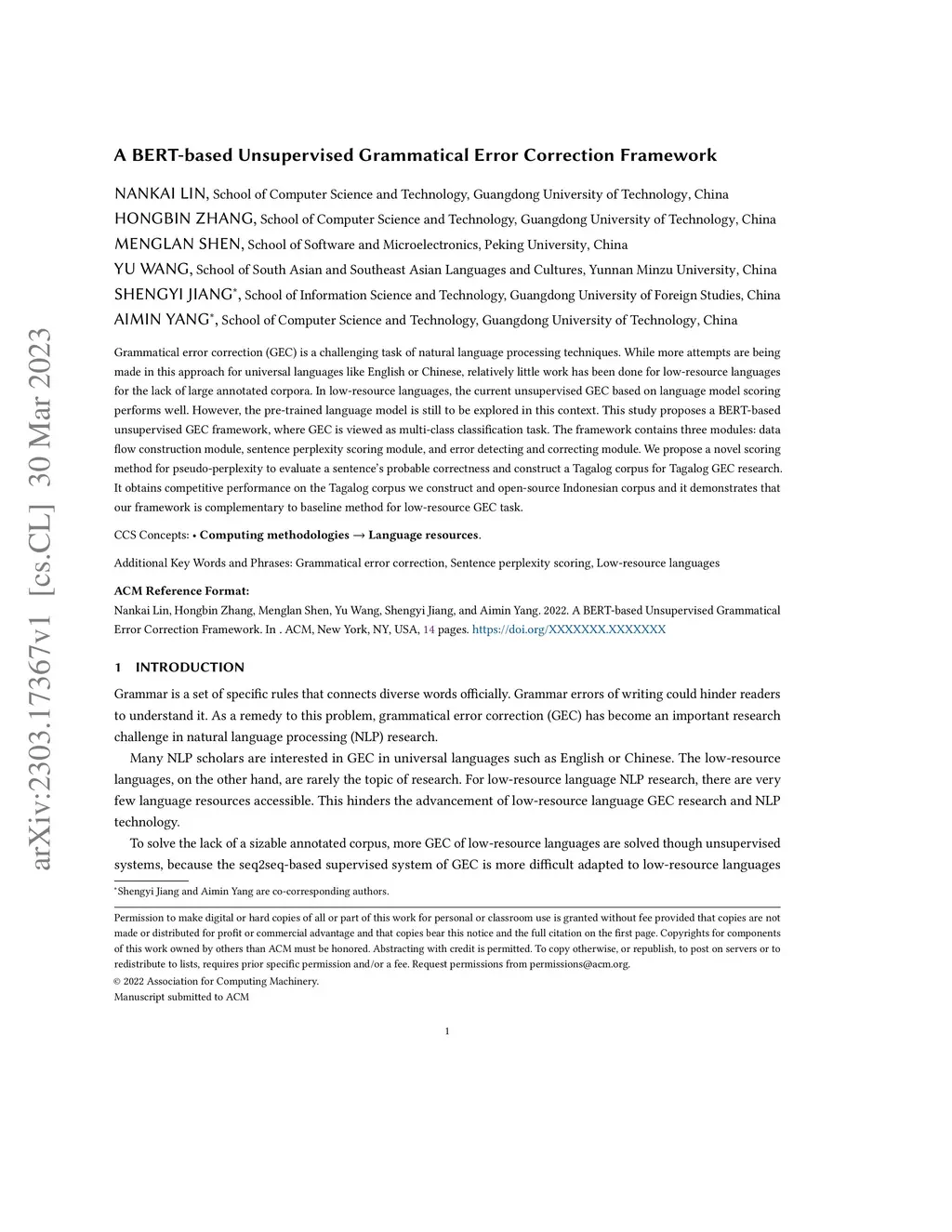 Grammatical error correction (GEC) is a challenging task of natural language processing techniques. While more attempts are being made in this approach for universal languages like English or Chinese, relatively little work has been done for low-resource languages for the lack of large annotated corpora. In low-resource languages, the current unsupervised GEC based on language model scoring performs well. However, the pre-trained language model is still to be explored in this context. This study proposes a BERT-based unsupervised GEC framework, where GEC is viewed as multi-class classification task. The framework contains three modules: data flow construction module, sentence perplexity scoring module, and error detecting and correcting module. We propose a novel scoring method for pseudo-perplexity to evaluate a sentence's probable correctness and construct a Tagalog corpus for Tagalog GEC research. It obtains competitive performance on the Tagalog corpus we construct and open-source Indonesian corpus and it demonstrates that our framework is complementary to baseline method for low-resource GEC task.