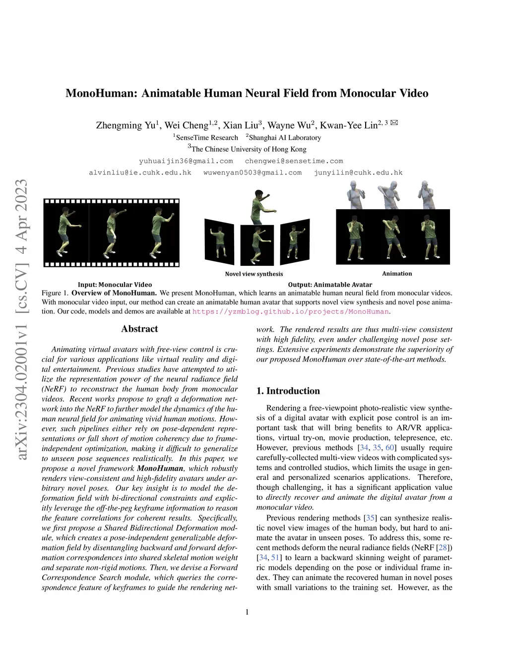 MonoHuman: Animatable Human Neural Field from Monocular Video