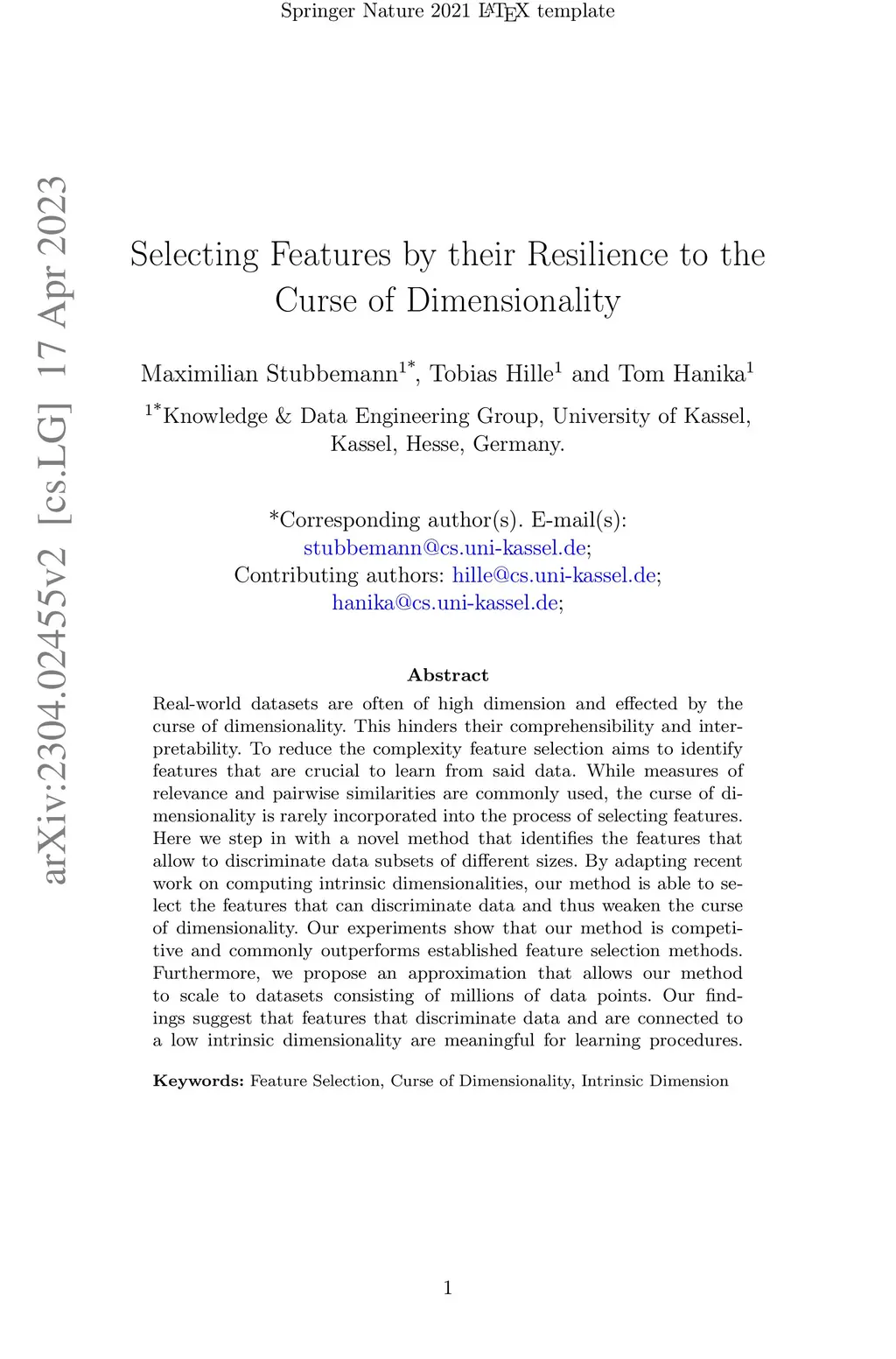 Selecting Features by their Resilience to the Curse of Dimensionality