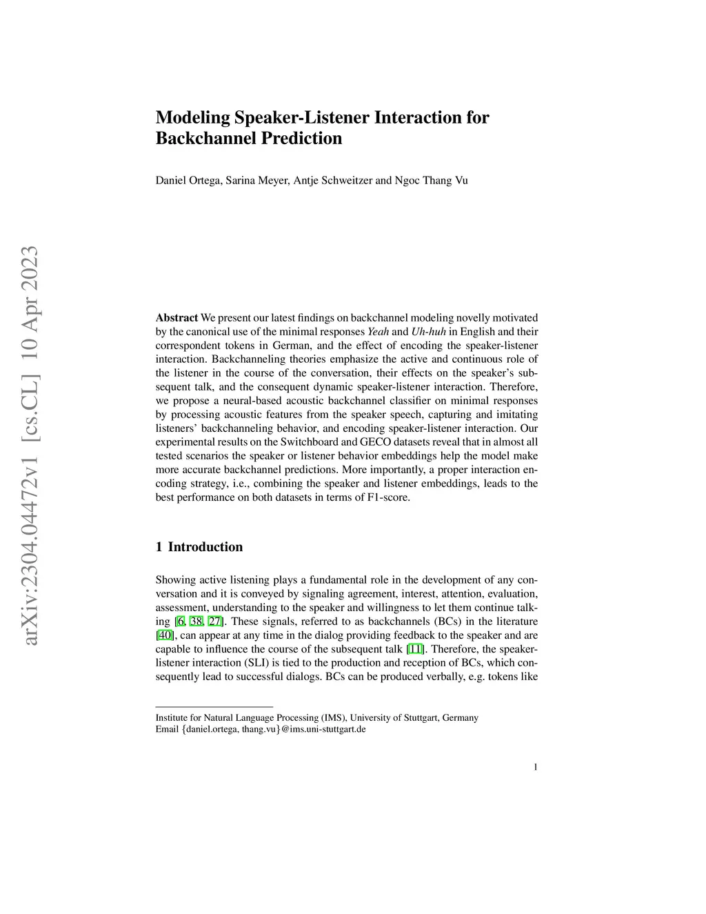Modeling Speaker-Listener Interaction for Backchannel Prediction