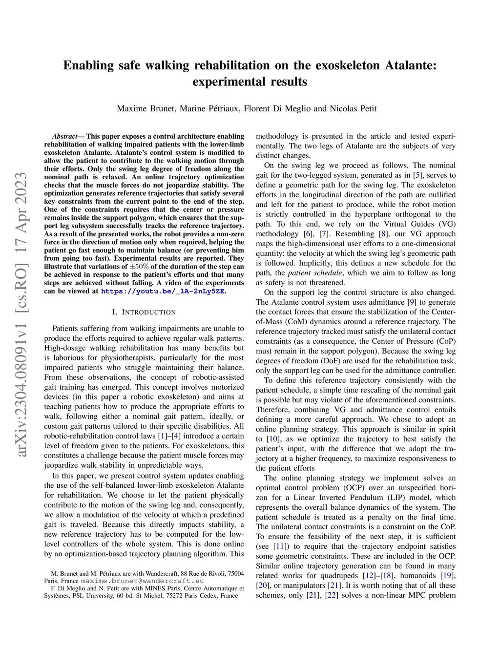 Enabling safe walking rehabilitation on the exoskeleton Atalante:
