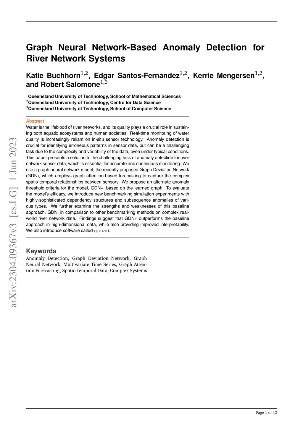 Graph Neural Network-Based Anomaly Detection for River Network Systems