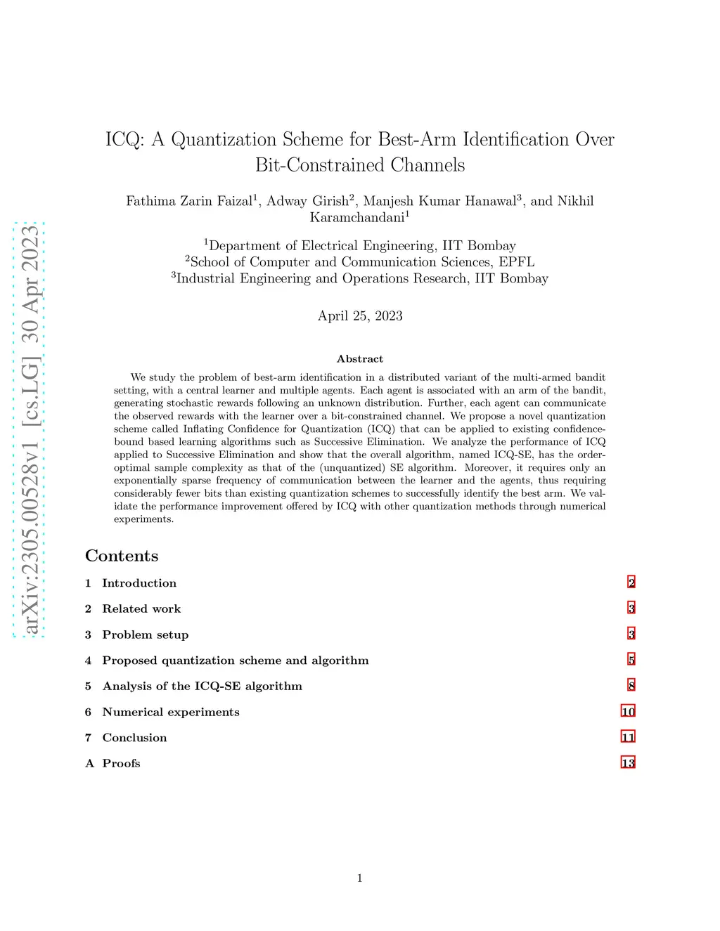 ICQ: A Quantization Scheme for Best-Arm Identification Over