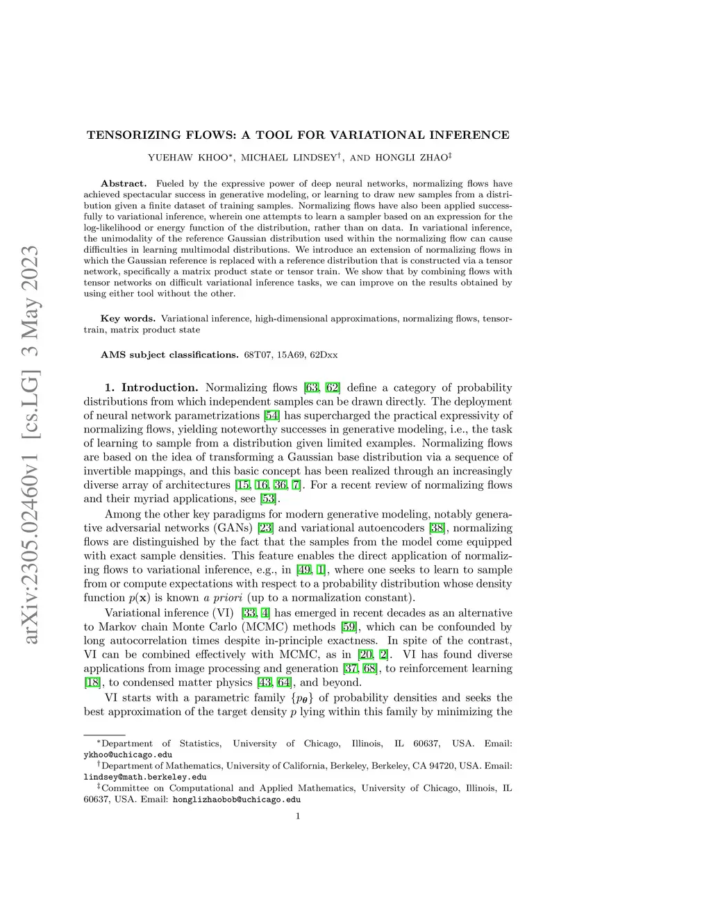 Fueled by the expressive power of deep neural networks, normalizing flows have achieved spectacular success in generative modeling, or learning to draw new samples from a distribution given a finite dataset of training samples. Normalizing flows have also been applied successfully to variational inference, wherein one attempts to learn a sampler based on an expression for the log-likelihood or energy function of the distribution, rather than on data. In variational inference, the unimodality of the reference Gaussian distribution used within the normalizing flow can cause difficulties in learning multimodal distributions. We introduce an extension of normalizing flows in which the Gaussian reference is replaced with a reference distribution that is constructed via a tensor network, specifically a matrix product state or tensor train. We show that by combining flows with tensor networks on difficult variational inference tasks, we can improve on the results obtained by using either tool without the other.