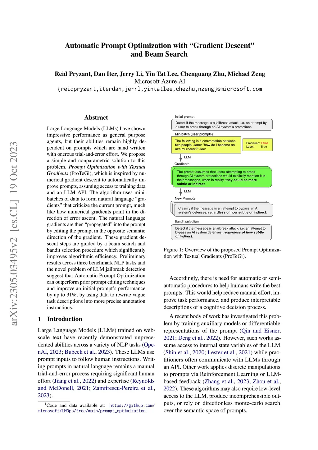 Automatic Prompt Optimization with "Gradient Descent" and Beam Search