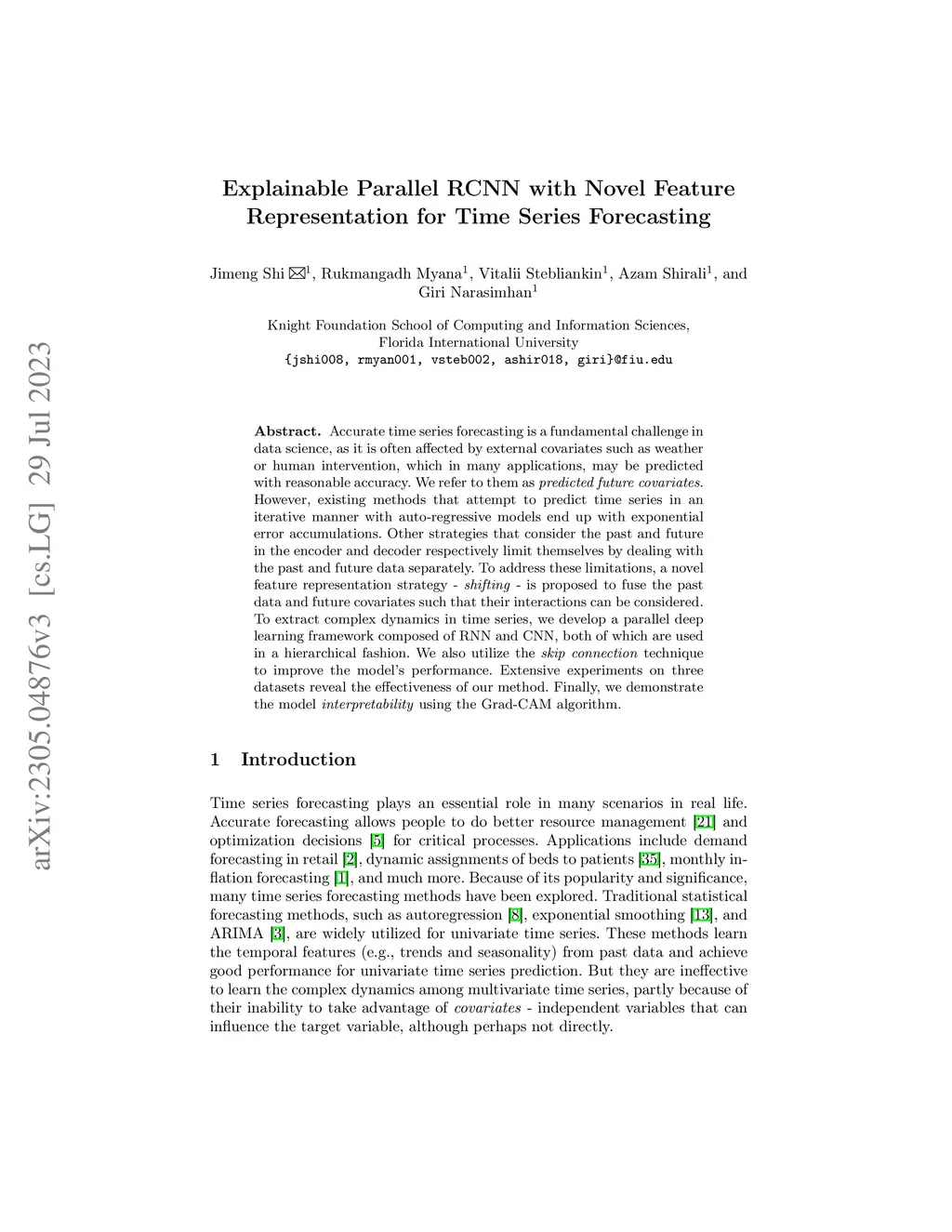 Accurate time series forecasting is a fundamental challenge in data science. It is often affected by external covariates such as weather or human intervention, which in many applications, may be predicted with reasonable accuracy. We refer to them as predicted future covariates. However, existing methods that attempt to predict time series in an iterative manner with autoregressive models end up with exponential error accumulations. Other strategies hat consider the past and future in the encoder and decoder respectively limit themselves by dealing with the historical and future data separately. To address these limitations, a novel feature representation strategy -- shifting -- is proposed to fuse the past data and future covariates such that their interactions can be considered. To extract complex dynamics in time series, we develop a parallel deep learning framework composed of RNN and CNN, both of which are used hierarchically. We also utilize the skip connection technique to improve the model's performance. Extensive experiments on three datasets reveal the effectiveness of our method. Finally, we demonstrate the model interpretability using the Grad-CAM algorithm.