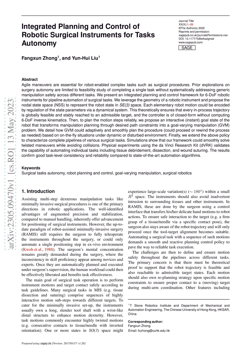Integrated Planning and Control of Robotic Surgical Instruments for