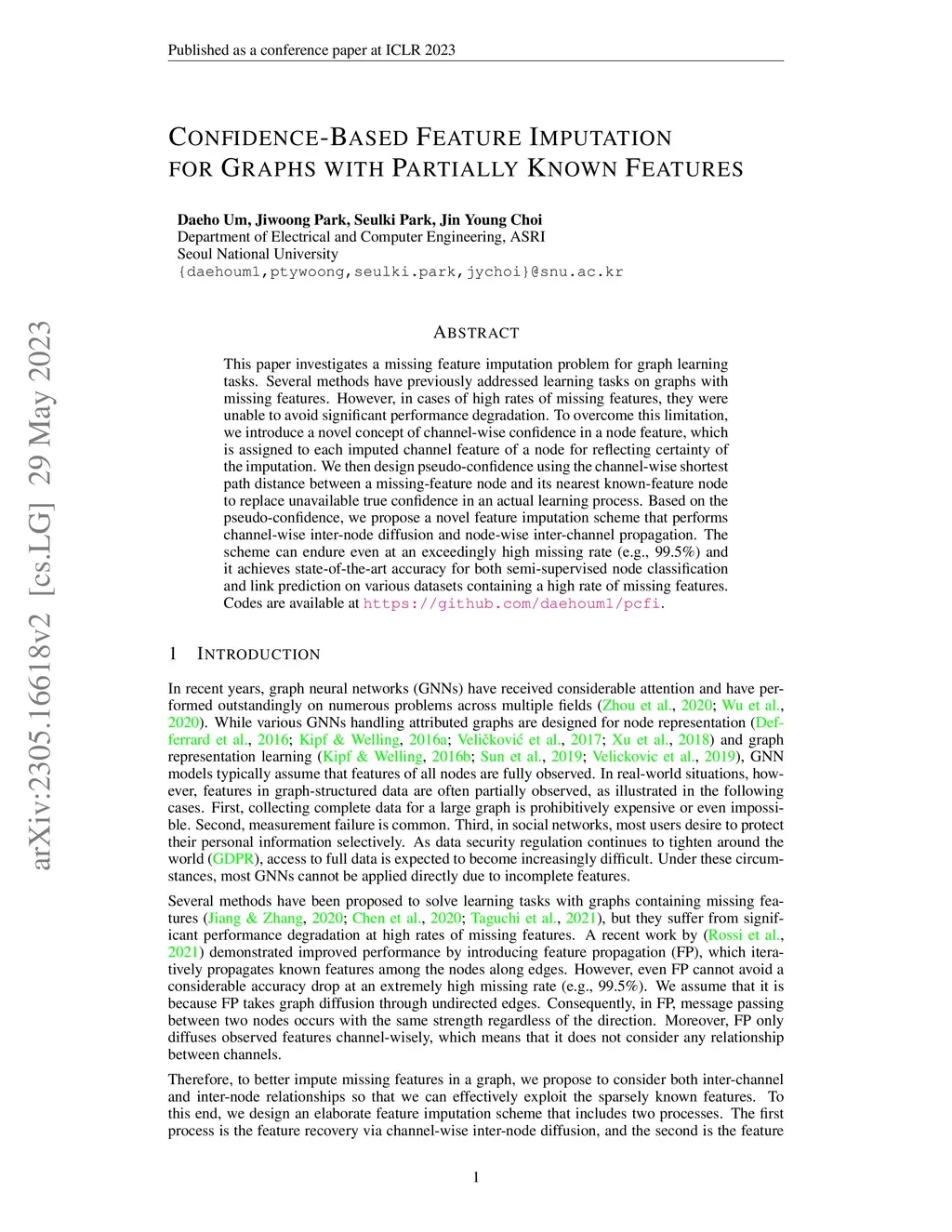 Confidence-Based Feature Imputation for Graphs with Partially Known